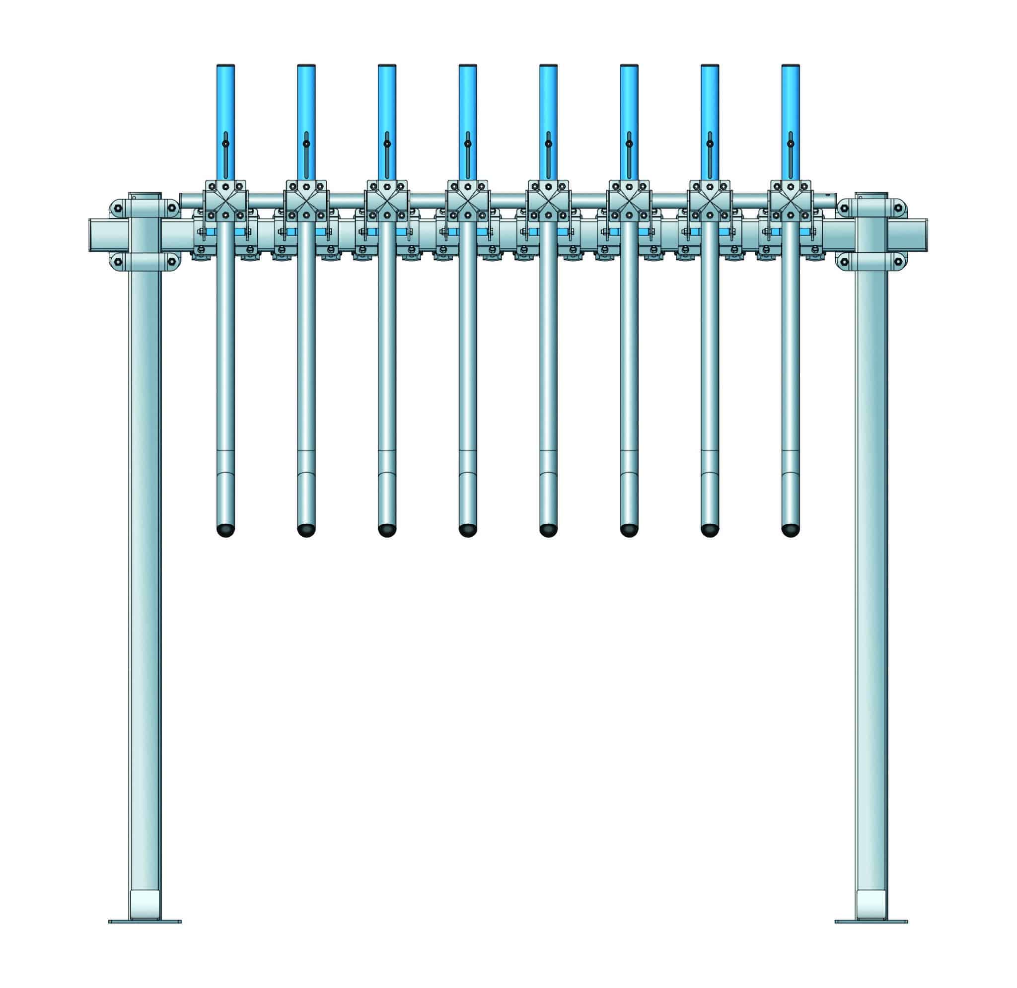 • Tubes pendulaires Ø48 mm avec ralentisseurs de descente intégrés pour des animaux plus sereins et des passages plus fluides